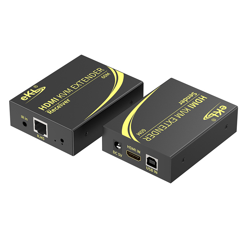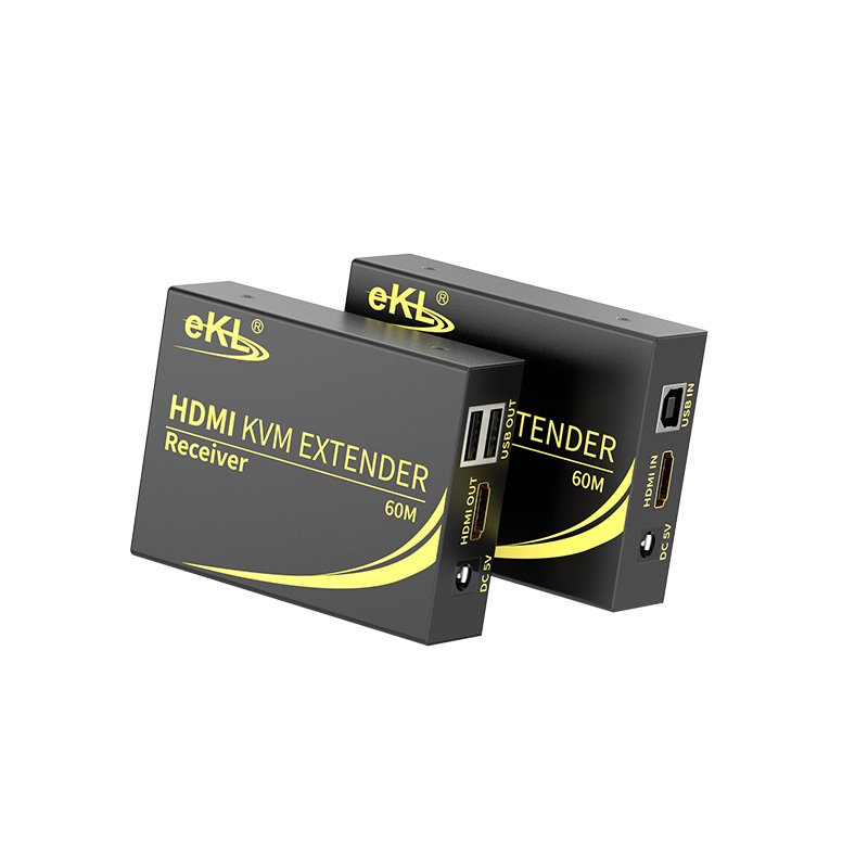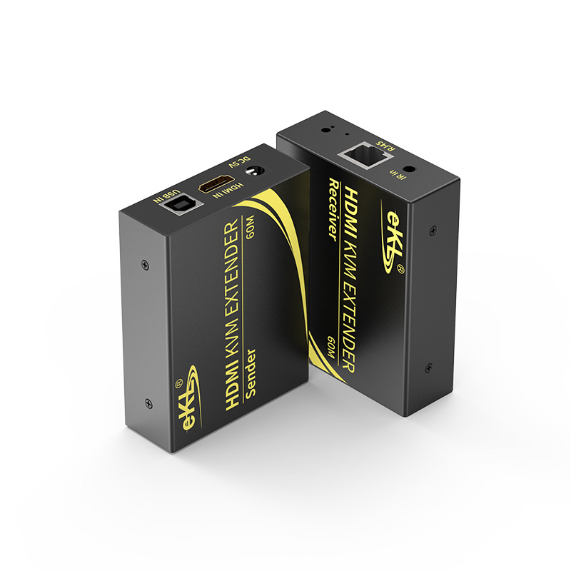 全新上市!HEK60采用单根CAT6类网线就能将HDMI音视频信号、鼠标键盘信号同步延长60米,支持1920*1080P@60Hz分辨率以及HDMI1.3、HDCP1.2、自适应EDID