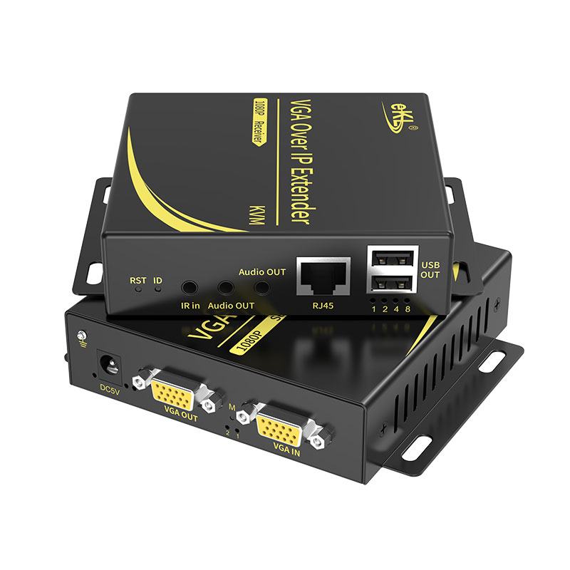 cq9电子平台网站VGA KVM单网线延长器KU300使用CAT5E/6网线能将VGA、USB信号延长300米;支持过交换机实现1对多使用、本地VGA环出显示、音视频同步传输、1920x1080p 60Hz高清分辨率