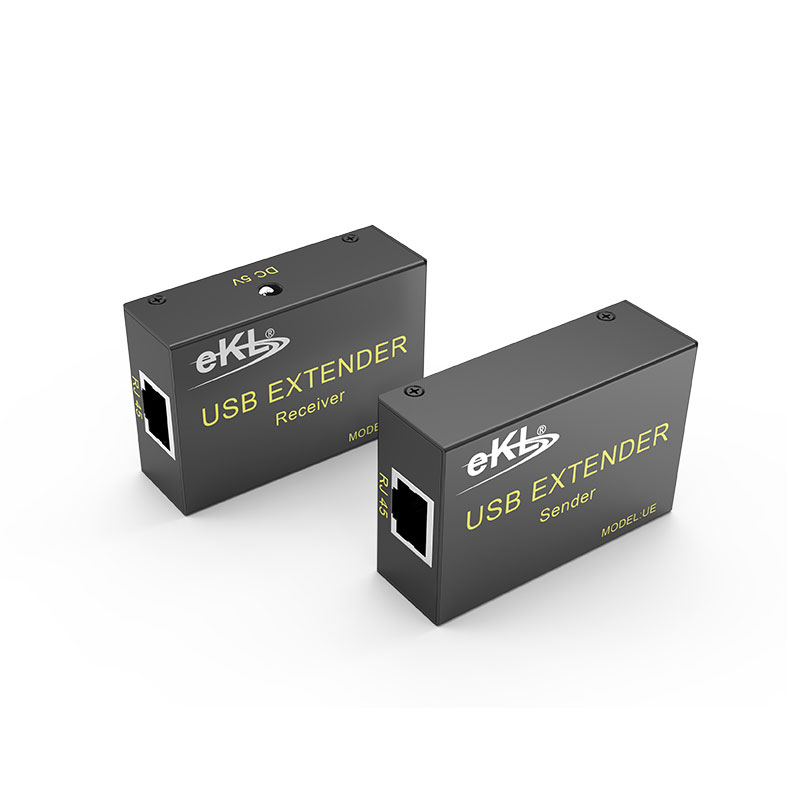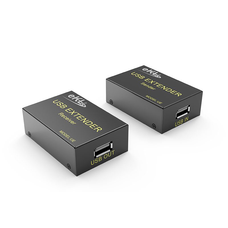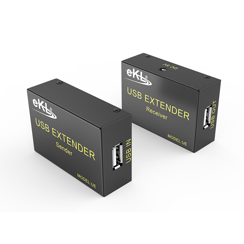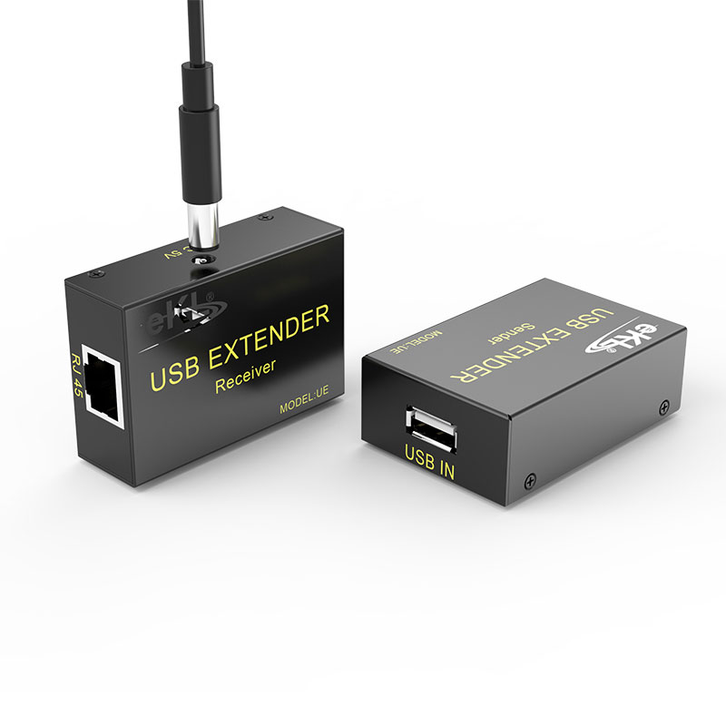 USB鼠标键盘延长器UE使用CAT6双绞线时能将USB信号延长60米;兼容USB1.1~USB2.0接口设备;多用于键盘、鼠标等低速USB设备的延长;如需要使用U盘等高速USB设备,建议选用能将USB2.0延长60米的HUE