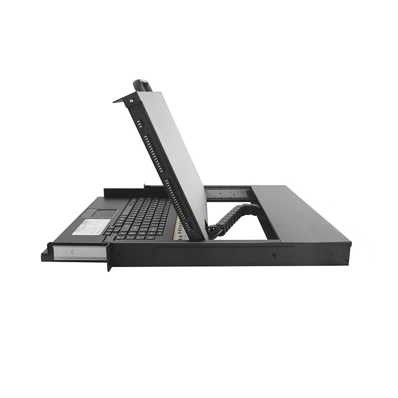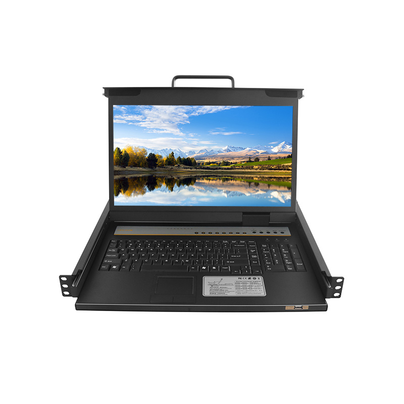 8进1出HDMI KVM切换器1708HD采用机架式设计,自带一个17.3寸显示器+1个巧克力键盘+1个触控鼠标,拉出来就是1台电脑,前置1个USB接口,方便在机房管理的时候快捷的查看设备目前运行状态,传输文件等,用完合起来退回去就行