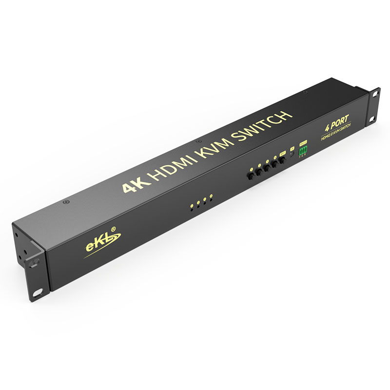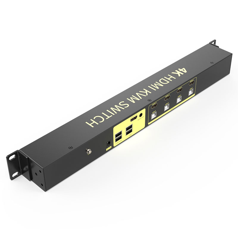 cq9电子平台网站机架式HDMI KVM切换器采用4进1出设计,支持1台HDMI显示+1套键鼠控制4台HDMI电脑主机,兼容Windows、Mac OS、Linux、Android等系统,最高支持3840x2160 60Hz分辨率,带HDMI音频分离功能,通过3.5mm音频接口输出,可连接耳机、音响,支持5种切换方式:遥控器切换、按键切换、鼠标切换、键盘热键切换、RS232切换