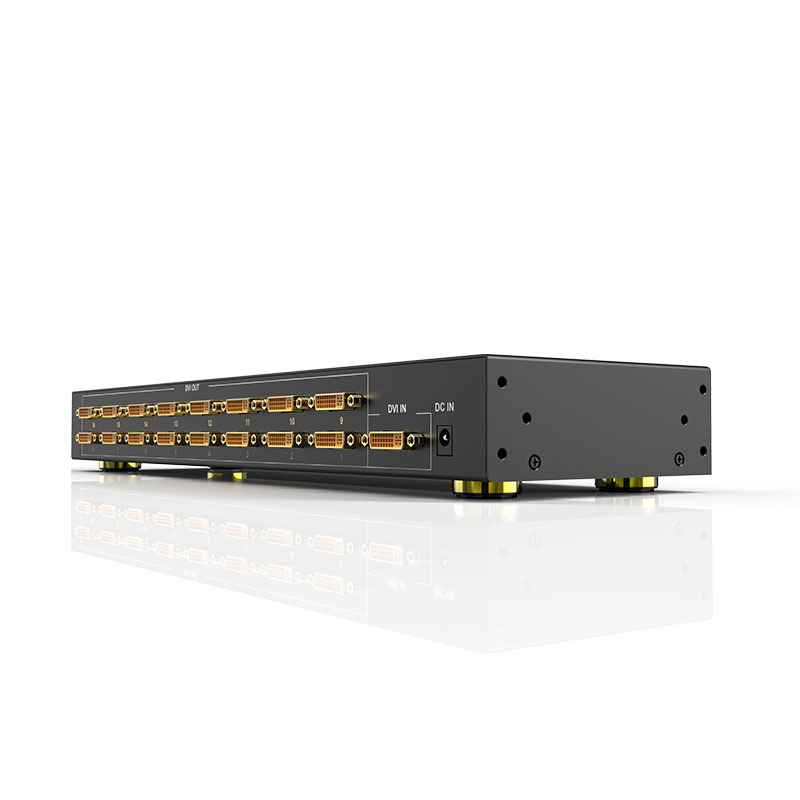 工程专供DVI分配器1分16 161D轻松将1路DVI信号分配成16路DVI信号输出,画面同步;兼容主流操作系统,支持级联叠加输出、1920*1080p@60Hz分辨率,支持即插即用