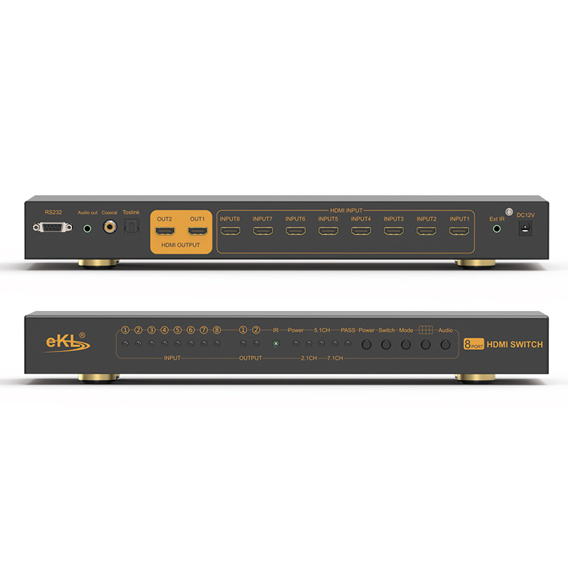 cq9电子平台网站HDMI无缝切换器812HA采用8进2出(2路画面相同)设计,兼容多种操作系统,切换不黑屏,可上机架;支持多个HDMI输入画面同时显示在一个屏幕上,同时自带光纤、同轴、3.5mm音频输出;切换方式支持RS232控制切换、面板按键切换和红外遥控切换